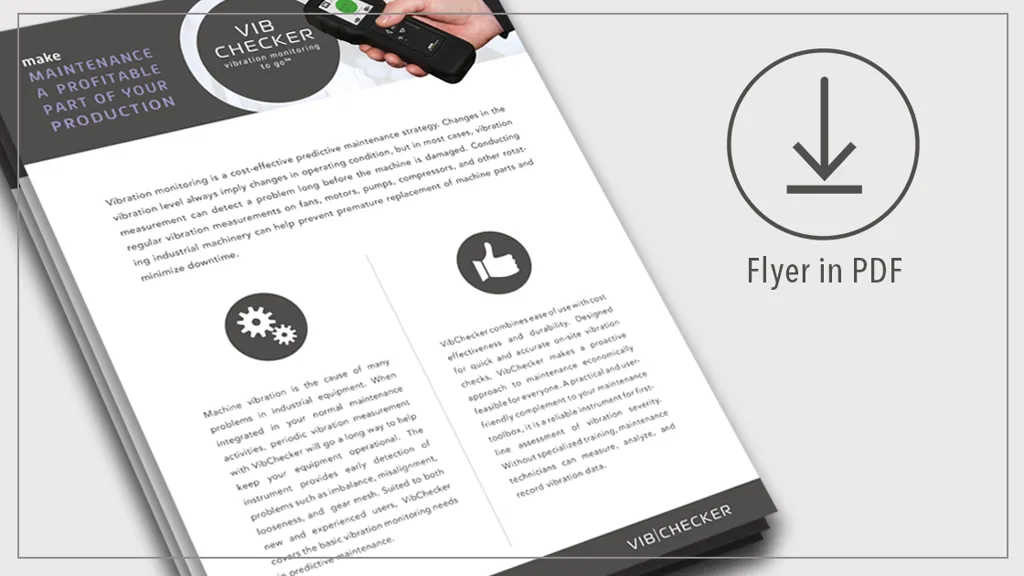 Le vibrazioni delle macchine sono la causa di molti problemi nelle apparecchiature industriali. Se integrata nelle normali attività di manutenzione, la misurazione periodica delle vibrazioni con VibChecker contribuirà a mantenere in funzione le apparecchiature.