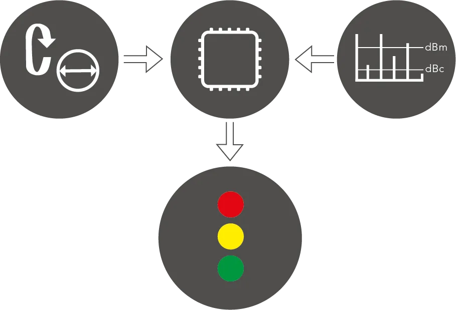 The result from the dBm/dBc measurement is the bearing condition data, evaluated in green-yellow-red.