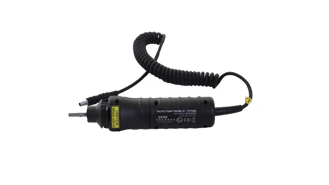 The handheld shock pulse transducer with a probe is perfect for use together with SPM's handheld Ex instruments in a potentially explosive atmosphere. The probe tip is spring-loaded and moves within a sleeve made of chloroprene rubber (neoprene) and tolerates surface temperatures up to 110 °C (230 °F). The probe is classed IP65.